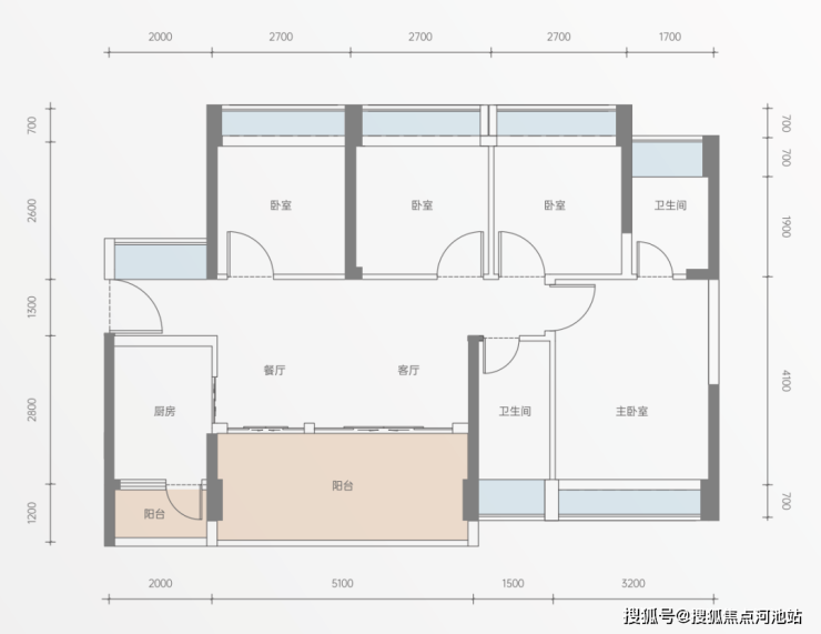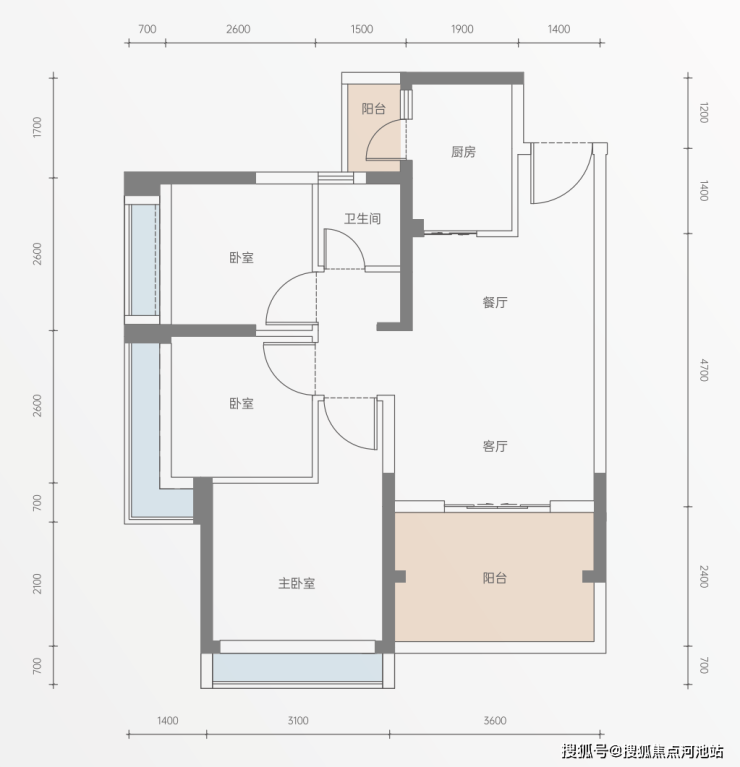 户型方正实用,双阳台;约3.6米阔景阳台,享IMAX观景面;主卧约3.1米开间,视野无遮挡。