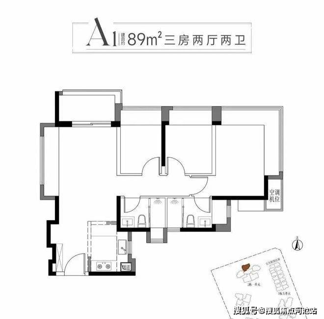 我们楼盘首推一期的1栋1单元,产品面积约89-112㎡ 3-4房,具体尺寸数据还没出,新规得房率还是值得期待的。其中89㎡ 3房2厅A1户型为常规经典竖厅,主卧有270度大飘窗。