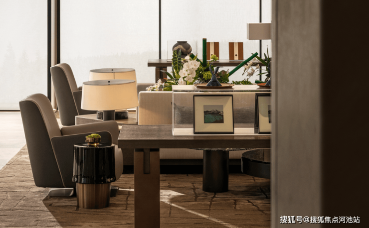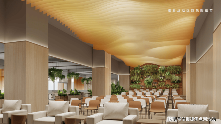 区别于传统的写字楼大堂,更注重企业主的待客之道,和商务的高效性,将呈现人文生态、多元化、有温度的新型辦公,大堂和商务会客厅巧妙结合在一个空间中,营造出商务、舒适的感觉。