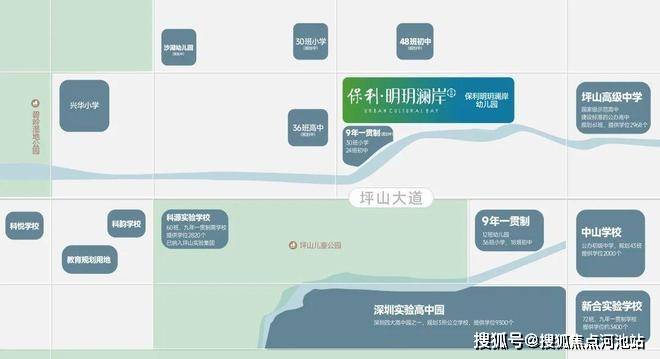 保利明玥澜岸花园自带1所12班制幼儿园,旁边规划有1所九年制公办学校,