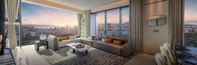 面宽约13.6米的巨幕餐客厅,开放式的横厅布局,通透感极佳。270°立体景观视野,将一线中央绿境呈现窗前,侧面视野也很宽奢,面宽超过7米,当城市的巨幅风景成为休闲会客的背景板,豪奢已不足以形容这种体验。
