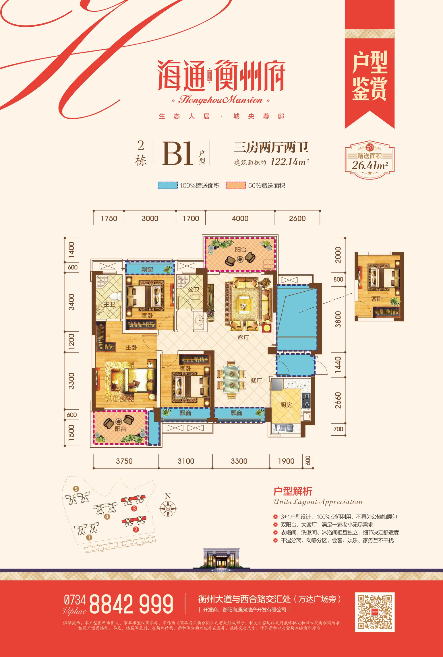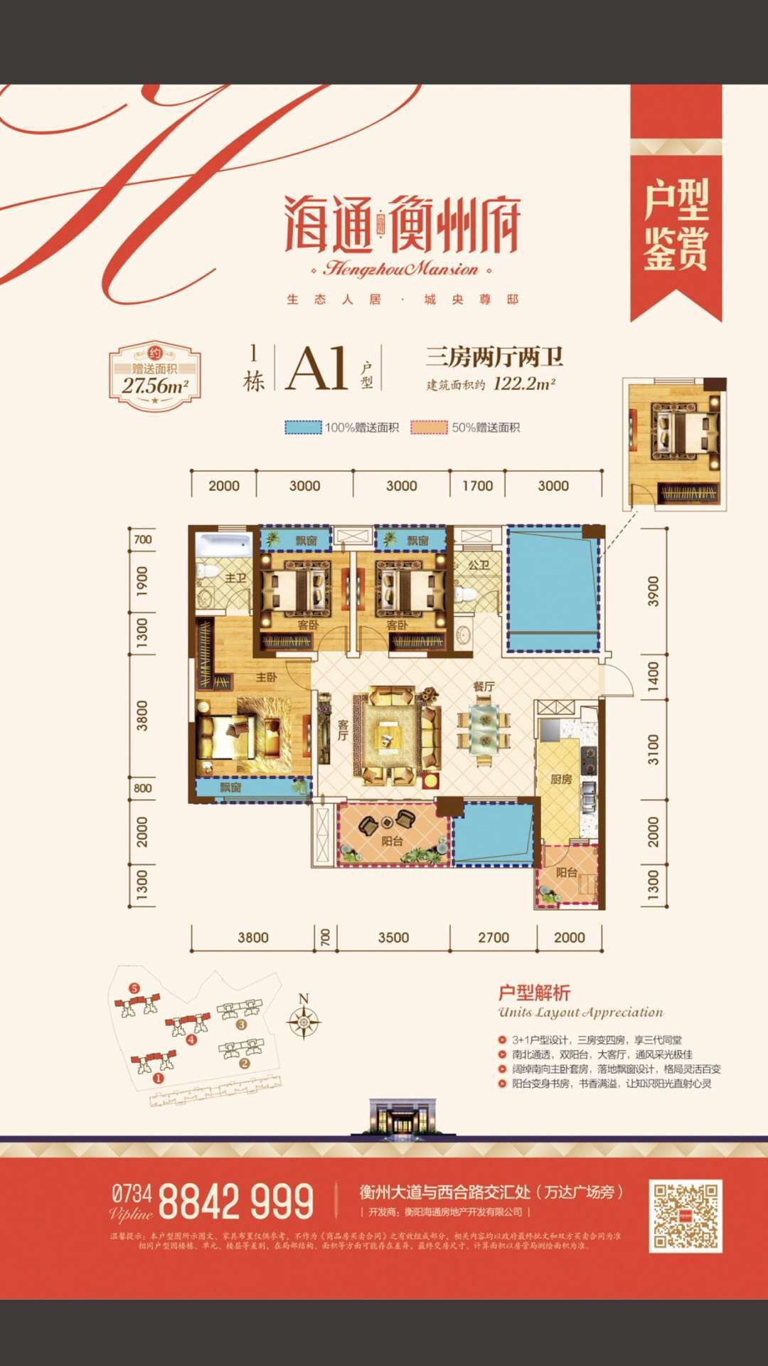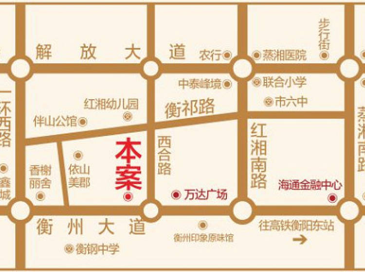 海通•衡州府,位于衡州大道与西合路交汇处,与万达广场仅100米之隔,由五栋正南北、零公摊墅质高层及少量商业围合而成。总建筑面积19.6万平米,规划总户数1232户,多款创新户型及完善的智能化配套可满足主流客群的不同需求,建成后将成为衡州大道宜居、具有代表性的社区