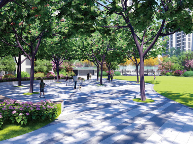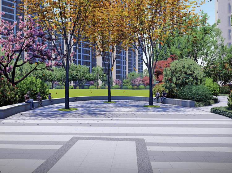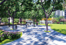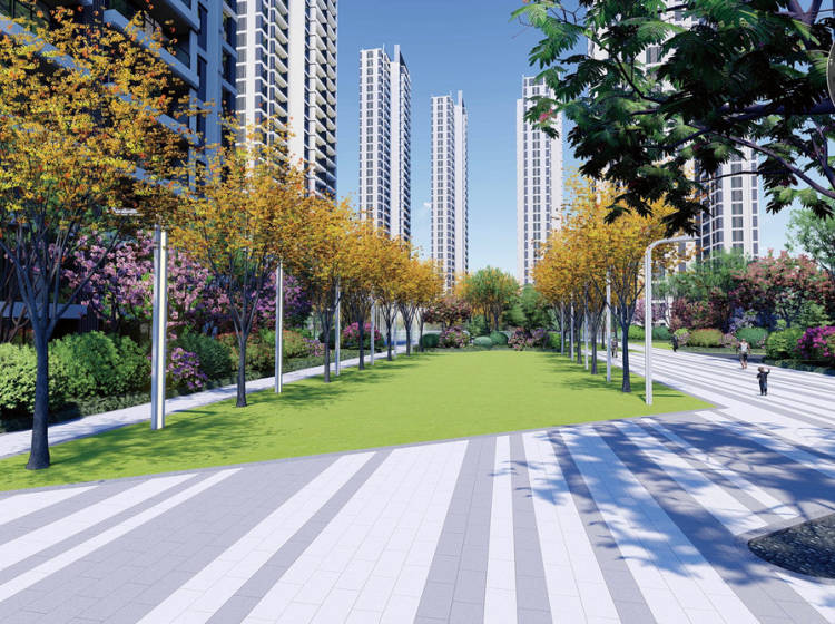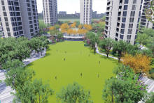 社区以园林为中心进行楼栋围合式布局,从而呈现约150米超宽楼间距;北面楼栋向北、南面楼栋向南,几乎无建筑遮挡,做到南北双向视野开阔;所有楼栋向东南方偏5°,阳光日照时间更长,通风更顺畅。