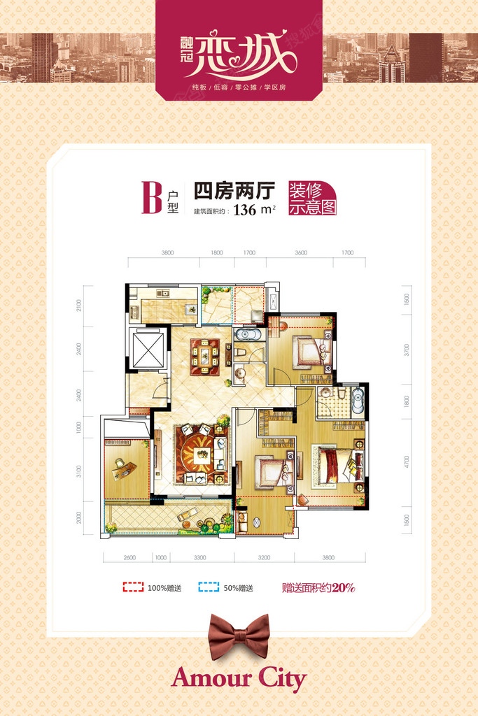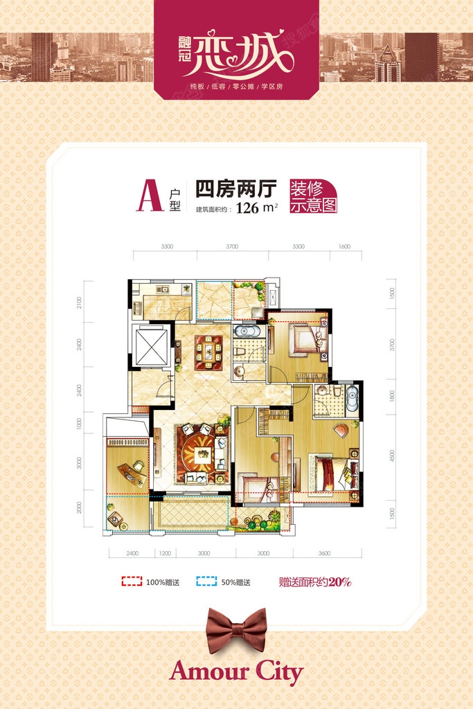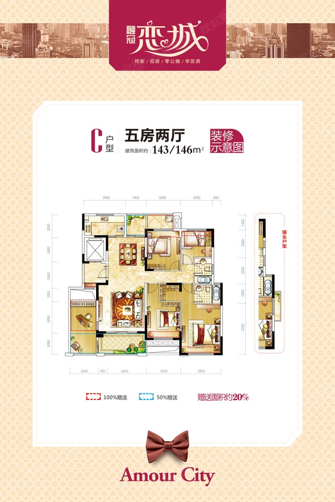 融冠恋城一梯一户南北通透纯板房,户型赠送面积约20%,相当于“零”公摊。126-166㎡住大四房五房,主人房、父母房、儿童房、书房、健身房一应俱全,三代同堂,其乐融融,家族起居并行不悖,长幼有序大家风范。