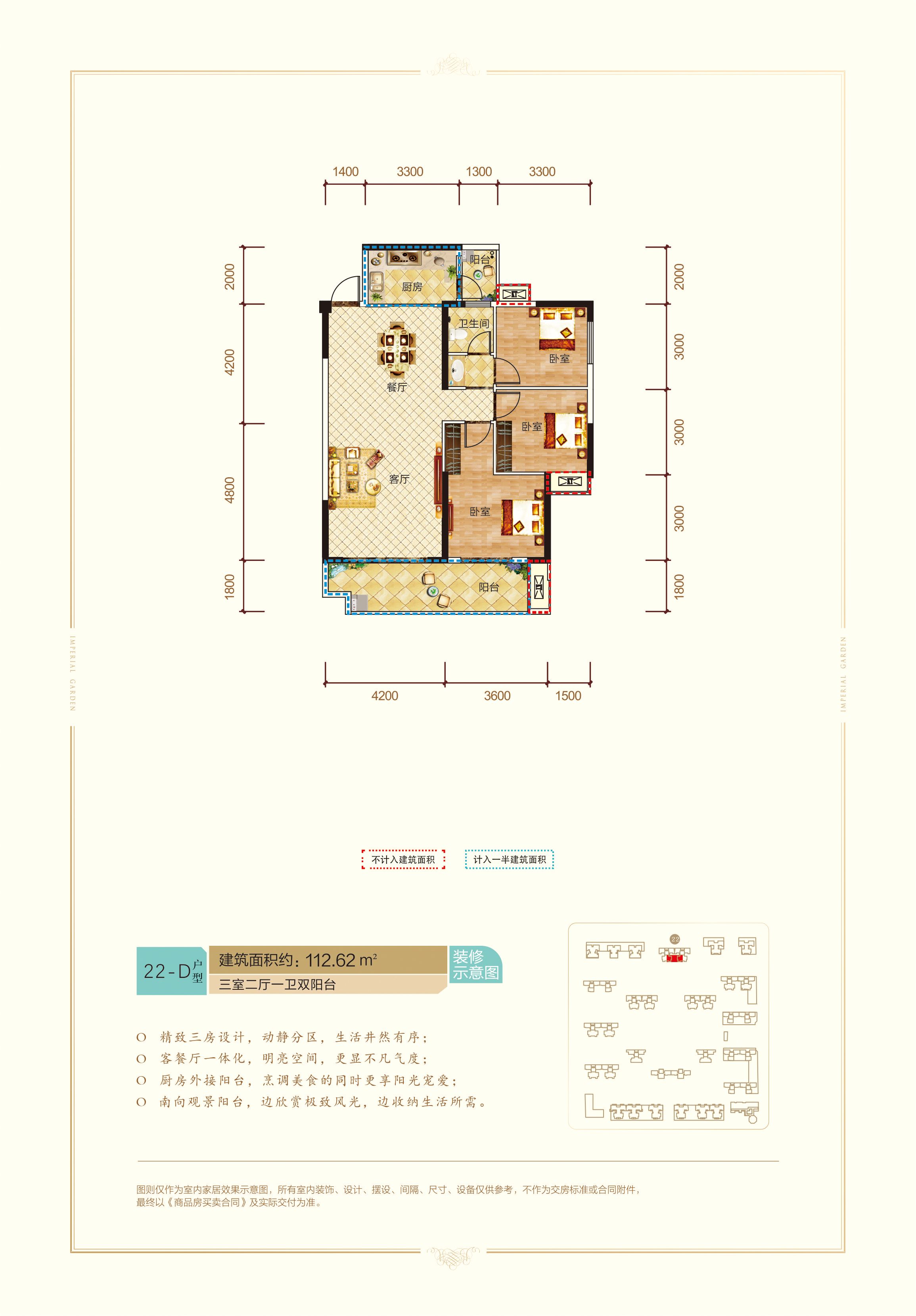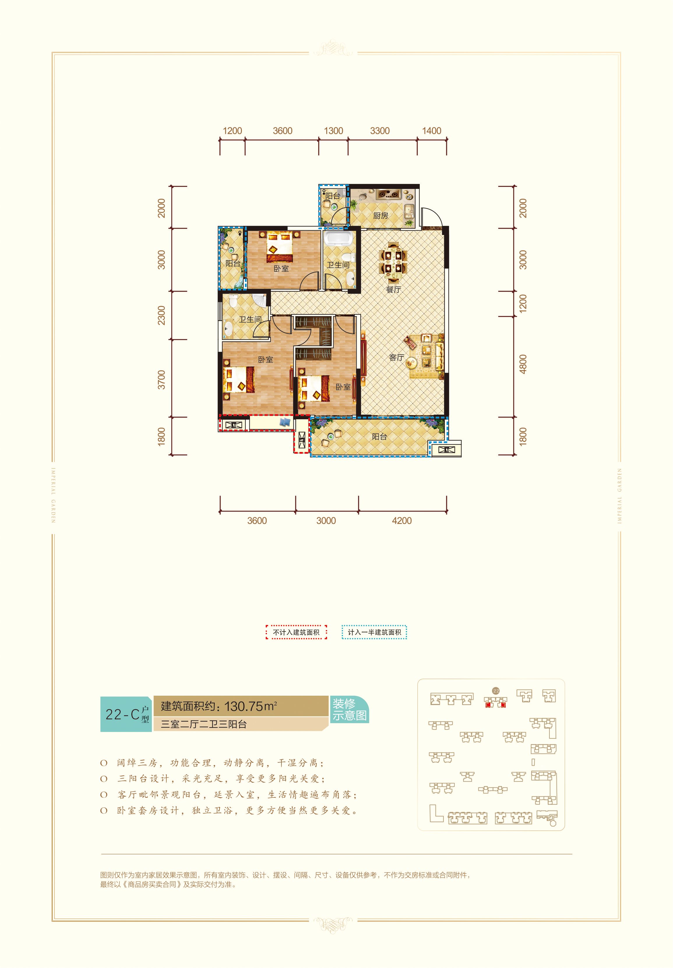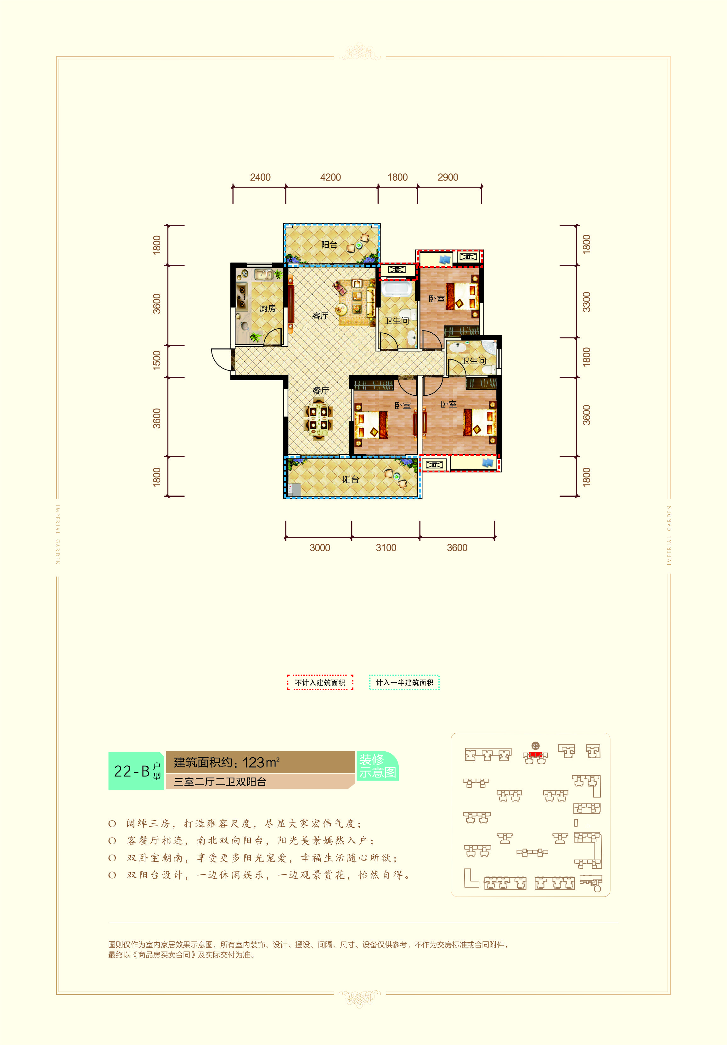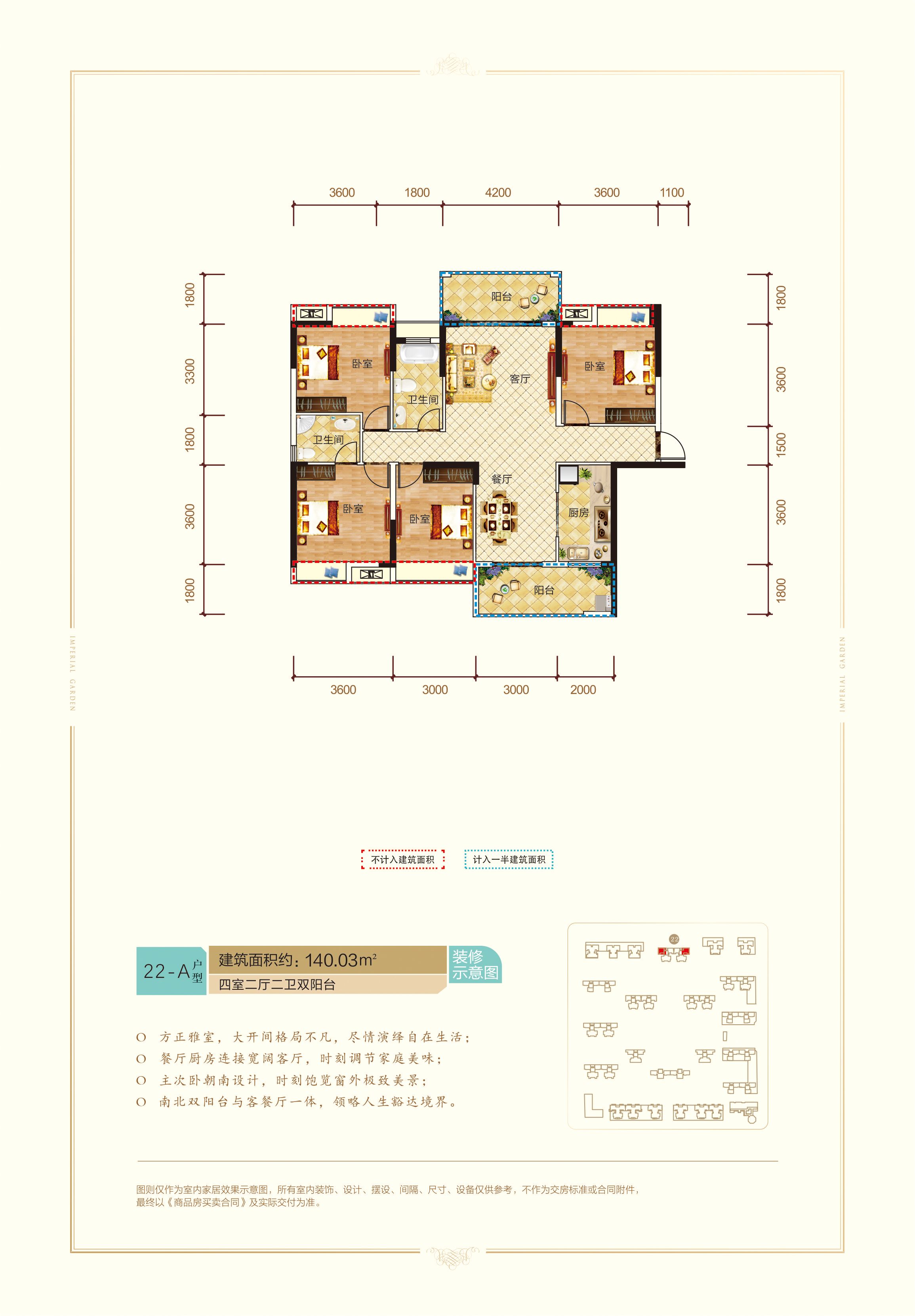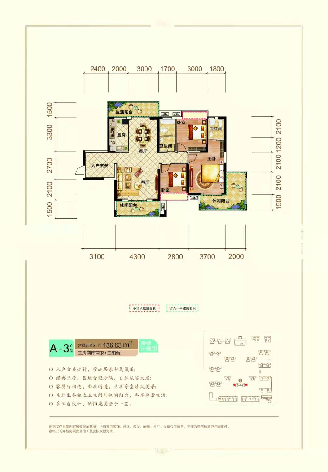 项目位于华新商圈解放西路和蒸水河交汇处,华新商圈是衡阳市政治、经济、文化中心,解放路是一条贯穿衡阳东西的重要的交通枢纽。项目总占地面积202亩,总建筑面积61万方,是华新开发区的大楼盘,由22栋电梯高层,总户数3861户,车位配比高达1:1.14,采用的人车分流,充分保证了小区的安全和整洁,2.5万方生态有氧商业街,游泳池,四大主题公园组成。在小区的东南角规划了3352平米的国际双语幼儿园,在小区的西南向有政府规划的中平小学。