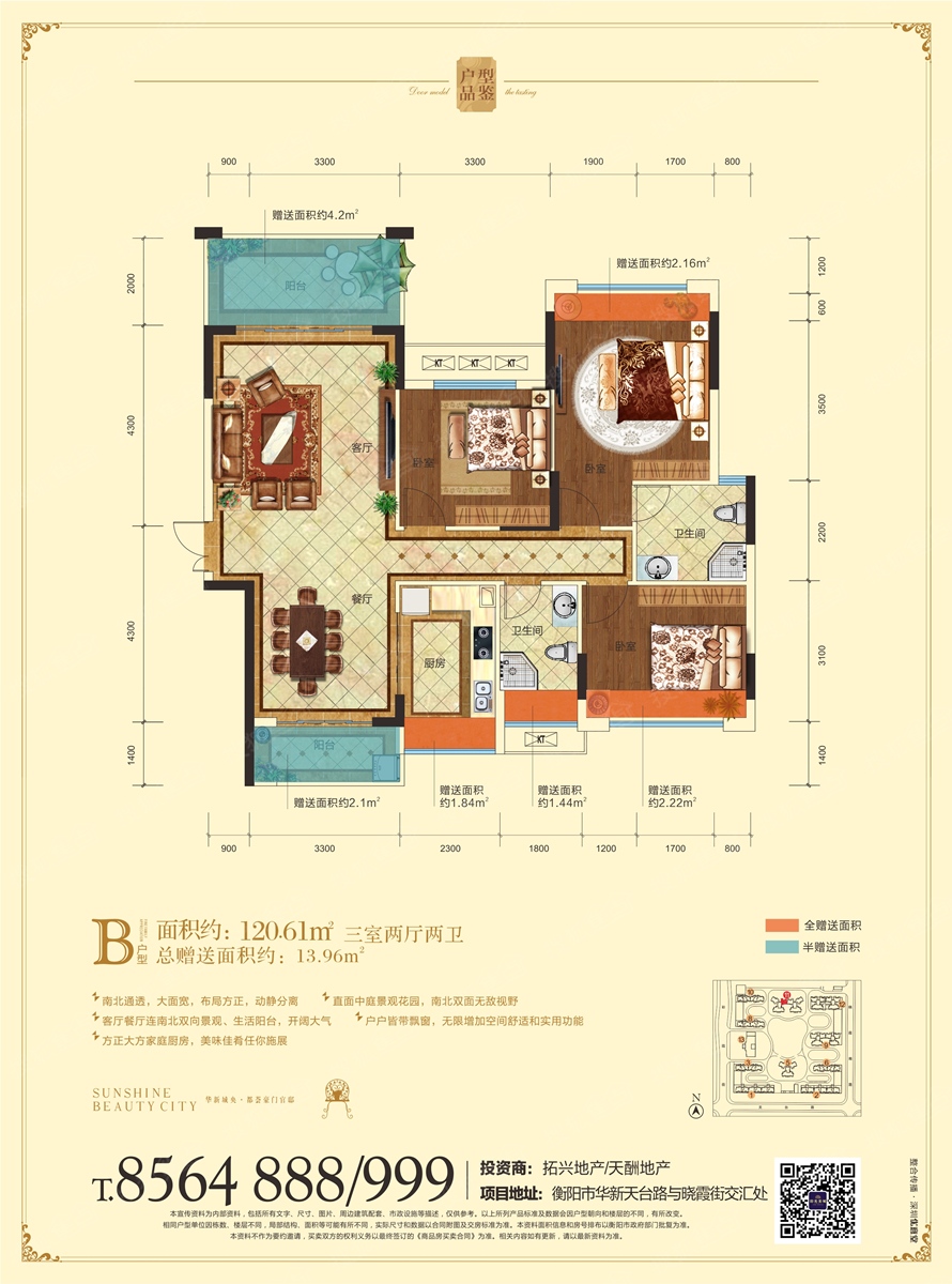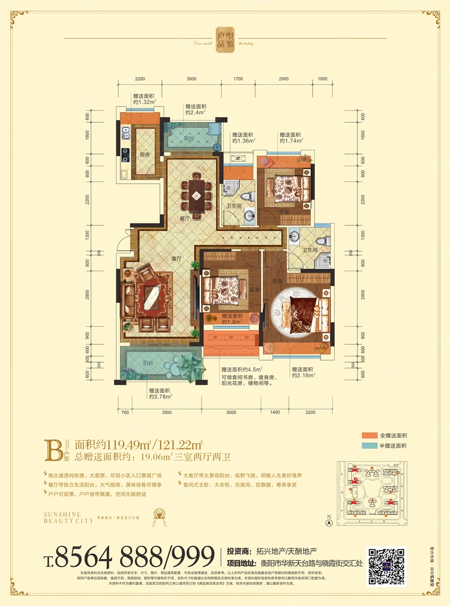 3室2厅2卫-B户型 约119.49㎡/121.22㎡