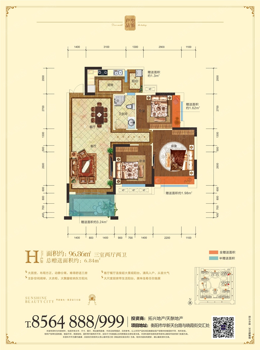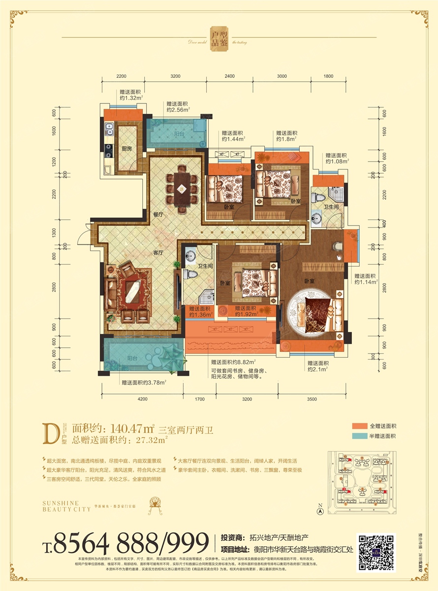 3室2厅2卫-D户型 约103.06㎡/105.68㎡/109㎡