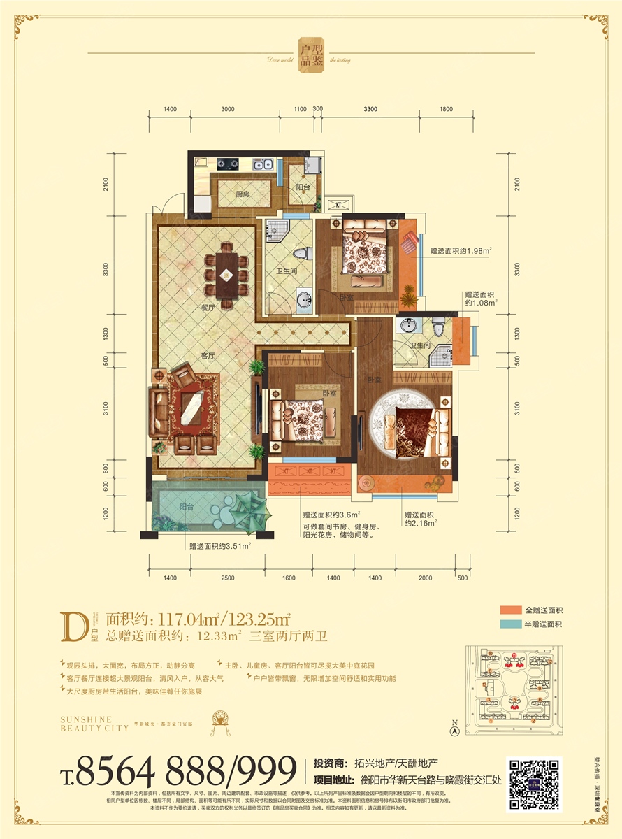 3室2厅2卫-D户型 约117.04㎡/123.25㎡