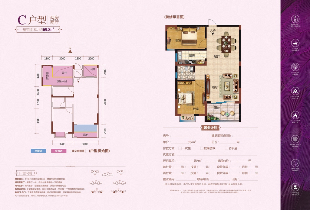 2梯2户南北通透纯板房,双向采光,超大阳台或飘窗饶昂房间的每个角落与阳光亲密邂逅。超180米楼间距,旖旎美景大尺度尊享。