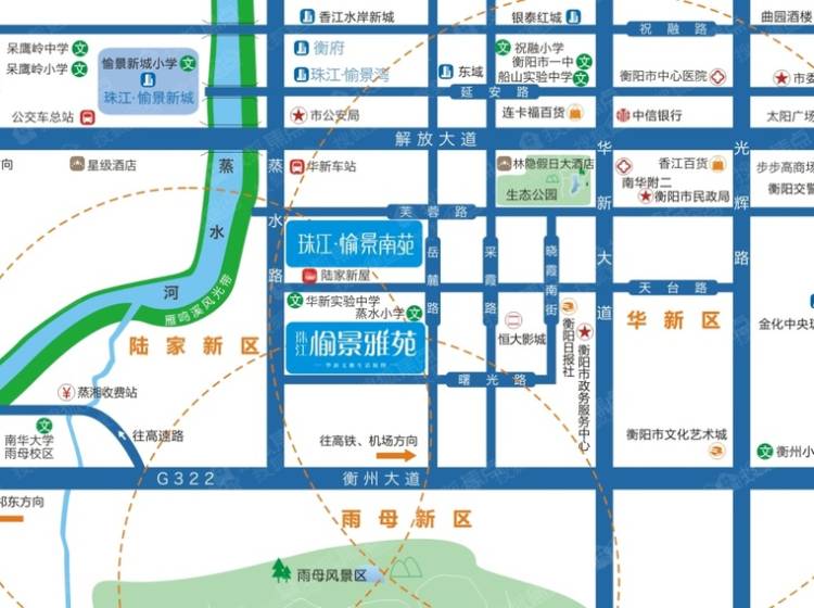 珠江·愉景雅苑位于蒸湘区蒸水南路,处陆家新区、华新开发区与雨母新区交汇处,联通“船山大道、解放大道、衡州大道”——衡阳市“三横”东西大动脉,紧邻衡阳重金打造的雁鸣溪风光带,国防教育公园、生态公园和陆家新屋公园,闹中取静,氧吧。与蒸水小学、华新实验中学仅一墙之隔,近邻衡阳市一中,船山实验中学、南华大学雨母校区等,地理位置优异,区位优势明显,是一个集居住、娱乐、运动、休闲等功能为一体的综合社区。