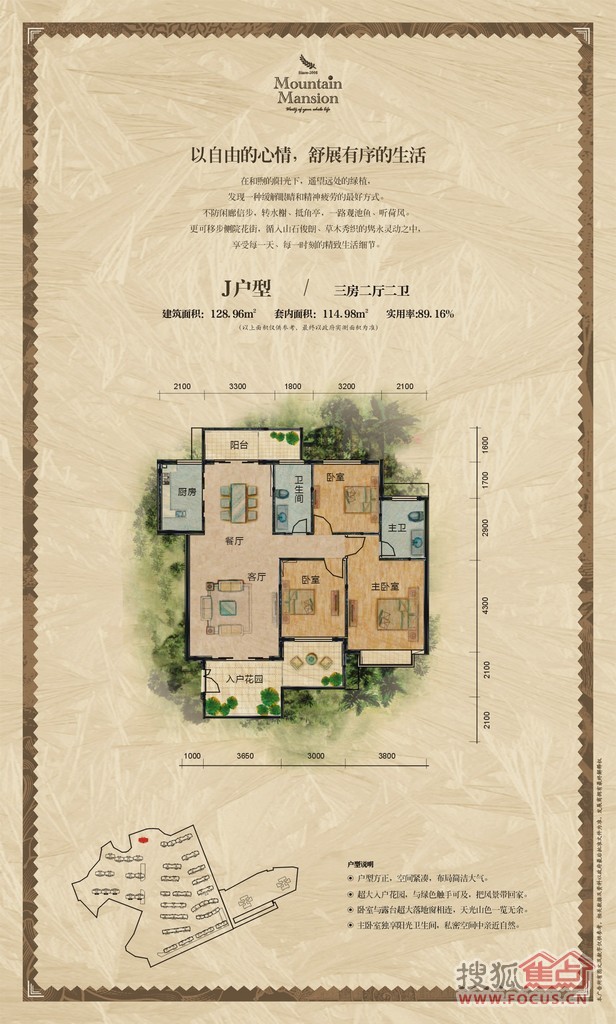 同时香榭丽舍II伴山公馆延续了香榭丽舍低密度洋房的精髓,以洋房和多层面世,主力户型在120平米左右。匠心酿制精致花园、空中露台、大气尊贵的会所,衡阳少有的高级山体、坡地、院落、洋房群雍容流露。伴山公馆一切以人的舒适度为标准设计功能空间,保留原生态自然环境。开放性空间绿色都在流动,心情与自然充分对话;合理的室内外交流场所,完全收纳阳光、空气和自然景观,构筑别样的生活情趣。以不同的建筑材料把丰富的居住内涵包括在内,象一个个永恒的自然生成物铆固在大地上。娴熟的设计手法,成熟的细节雕琢,一切只是以品质锻造世家洋房的恒久魅力,影响衡阳城市中心高档人居新标准。