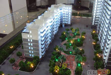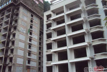 项目分为A、B两栋,2梯4户,A栋为6+1阳光多层;B栋为18+1电梯高层。
