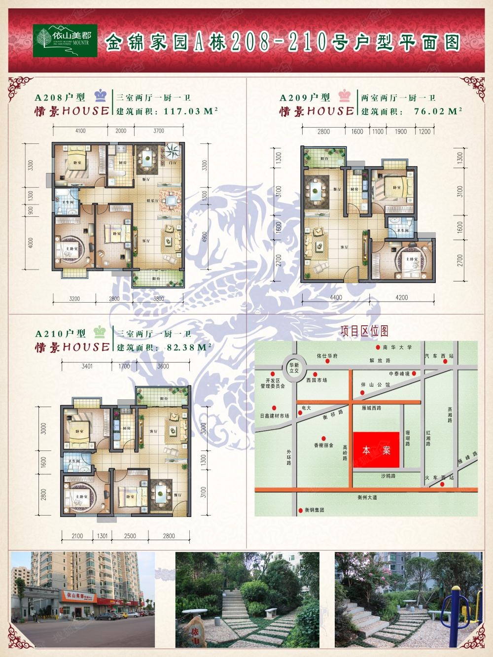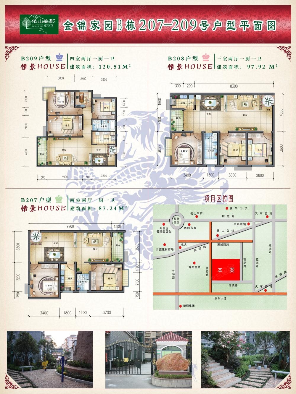 依山美郡给您提供的是外繁华,内宁静,舒适悠闲,高品质的生活!现房实景,即买即住的购房较佳时期,可售房源户型丰富,82平方造三房二厅,111平方造四房二厅,小面积大用途,我们要做的就是造衡阳人买得起的好房子!