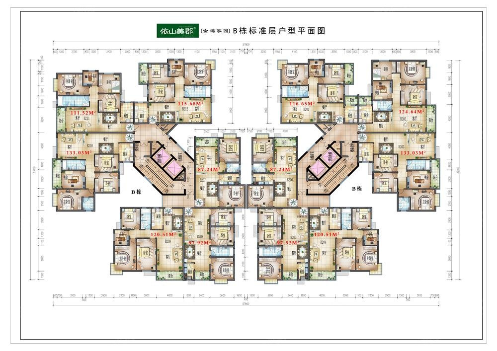 0室-依山美郡B栋标准层户型平面图