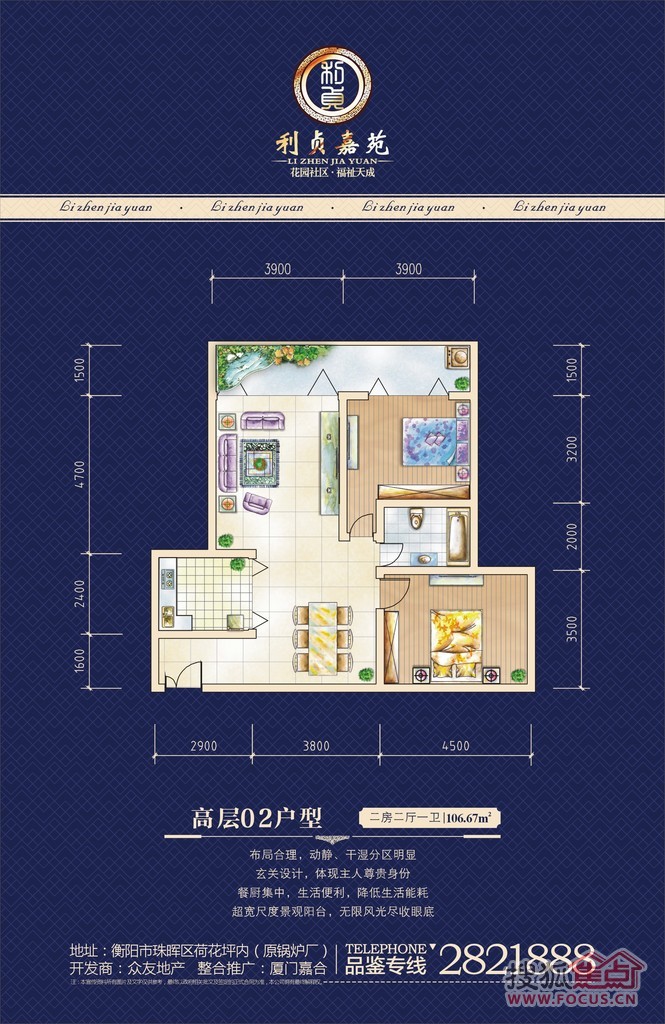 利贞嘉苑位于衡阳市珠晖区荷花坪内(原锅炉厂),由衡阳市众友房地产开发有限公司开发,占地面积23000平方米,建筑面积55000平方米。总户数400户,其中电梯房2栋,共26层;楼梯房6栋,共7层,户型大小区间97㎡-146㎡。