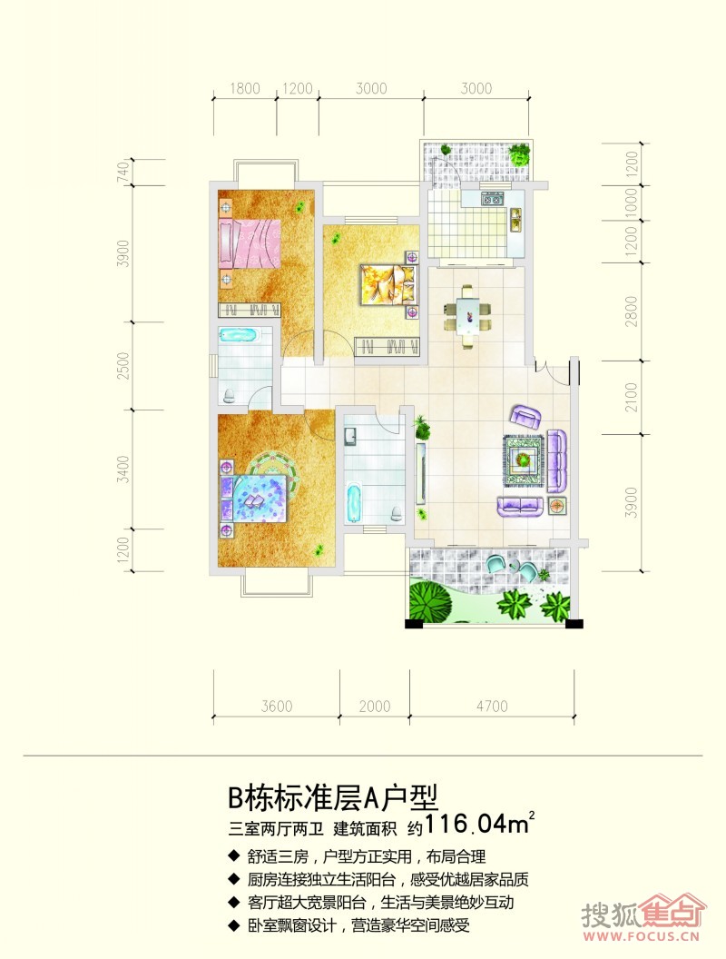 3室2厅2卫-利贞嘉苑高层01/03户型图