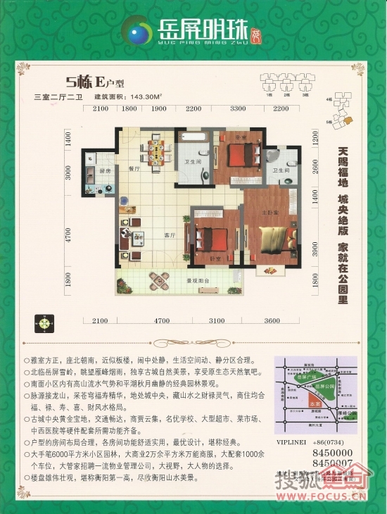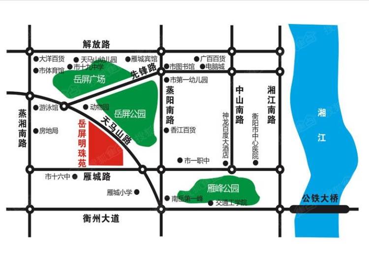 项目位于衡阳市雁峰区72号街区,南临街道32米宽的雁城路,北临街道45米宽的新雁城路(天马山南路),东临27米宽的天马山南路南端,西临金属物资回收公司,小区位于衡阳市独秀具有千年历史文化底蕴、市区少有古老的自然风景区-----岳屏公园,背靠南岳七十二峰排名前列峰的自然景观-----廻雁峰。