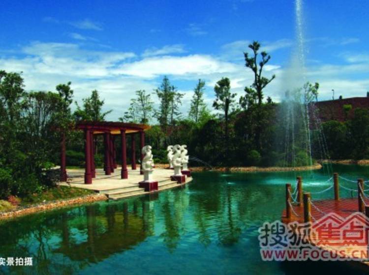 小区内配备有一条5公里的山地自行车道、一条2公里的登山步道,一个占地5亩的太极湖以及3公里的活水系统;
