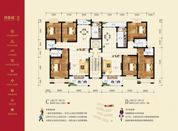 3室2厅2卫-鸿豪城·享山C、D户型图124-132㎡