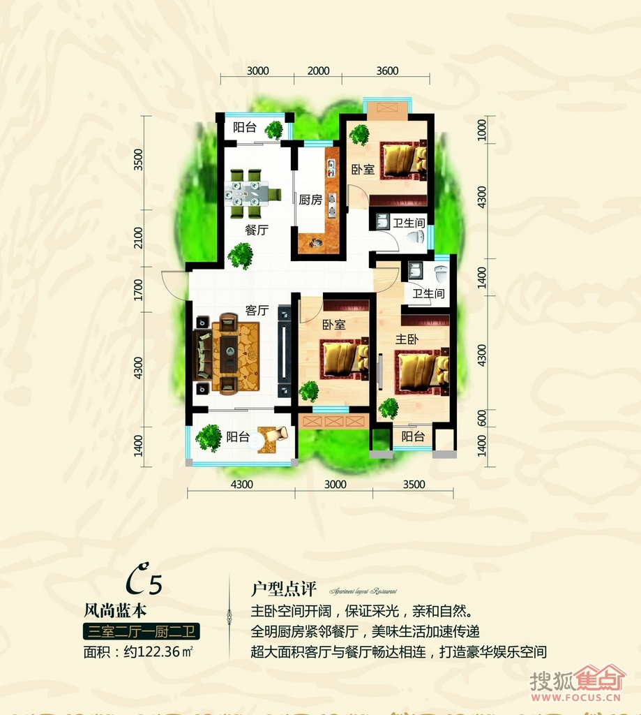 3室2厅2卫-C5户型建筑面积约122.36㎡