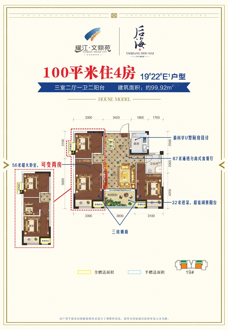 3室2厅1卫-耀江文鼎苑19#22#E1户型