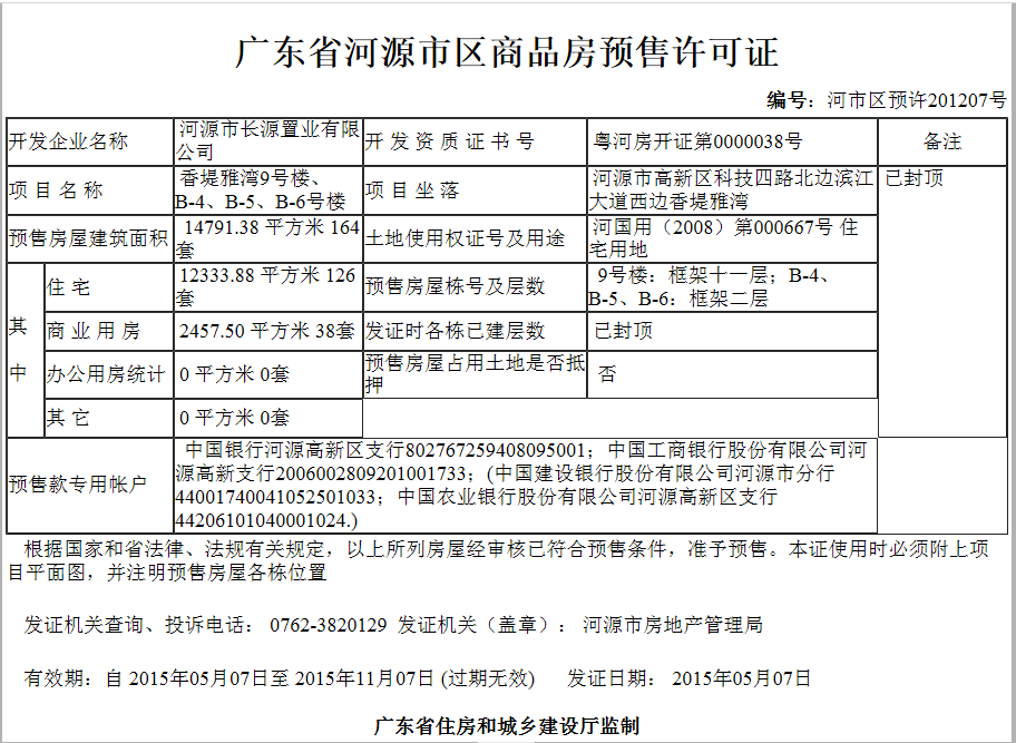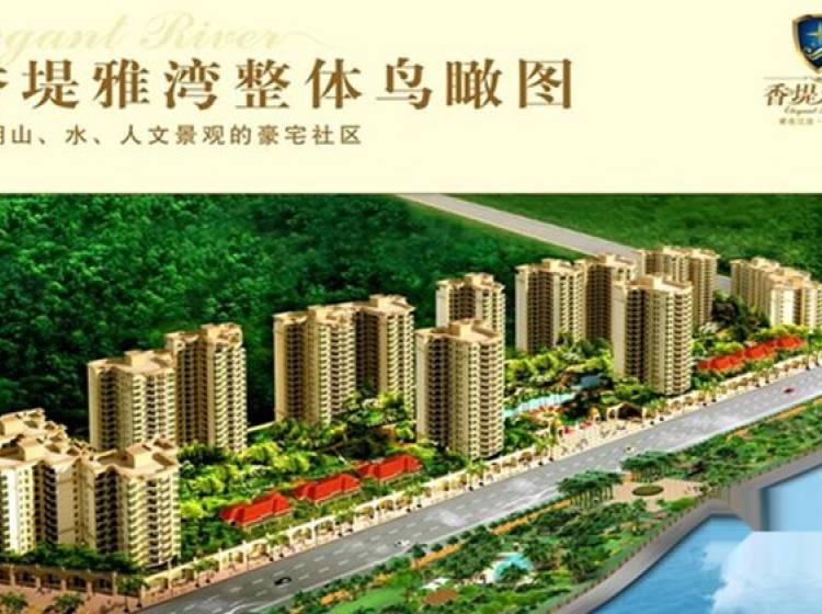 项目香堤雅湾位于河源高新技术开发区科技四路、科技三路、科技二路与滨江大道交汇处,总共分两期开发,占地8.2万多平米。目前开发的是一期项目,占地是441633.77平米,总建筑面积是124389平米,总共为1~9大栋17小栋高层及小高层电梯洋房组成,户数为917户住宅,以及12套稀缺江景的多层小别墅和118卡单层6米高骑楼商业旺铺组成。容积率仅有2.5,社区内设450多米长,2万多平米占地的绿化面积,全部建设园林花园,绿化率高达46%,分别有:游泳池、人工湖、喷泉、假山、凉亭、广场等。为了业主能够有更好的休闲娱乐场所,开发商还在社区对面,花了几百万建设了私家公园,占地大约为6万多平米,长达1.2公里。公园旁边就是河源的母亲河“东江”,浩浩荡荡的江面宽达600多米长,江水常年饱满、常年碧绿!