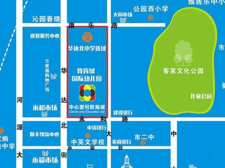 中心壹号教育城由中心壹号教育城集团投资,位于河源市华达北街,四周交通便利; 教育城项目占地总面积23000㎡,项目致力于打造融合人文、艺术、体育、儿童成长体验等教育配套,符合儿童青少年及各年龄段人群休闲、体验一站式教育成长体验中心,立志成为河源文化教育事业的标杆性项目。 早教机构、艺术机构、成人教育机构、婴童用品、儿童玩具、童鞋童装、体育文具、书城、儿童影视培训、儿童摄影、儿童主题乐园、名校直通车、远程教育、琴行、舞蹈培训、健身会所、跆拳道、儿童5D影院、国防教育、科技馆、健康餐饮、休闲吧等