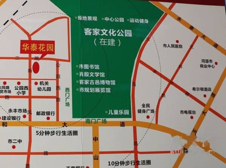 华泰花园,位于河源市新风路与纬十二路交汇处,周边商业氛围浓厚,紧邻客家文化公园,坐拥市区名校,真可谓公园就在房后面,商场就在屋前面,学校就在家旁边。
