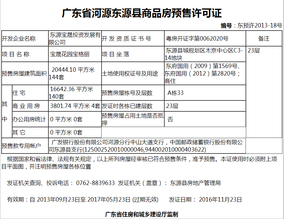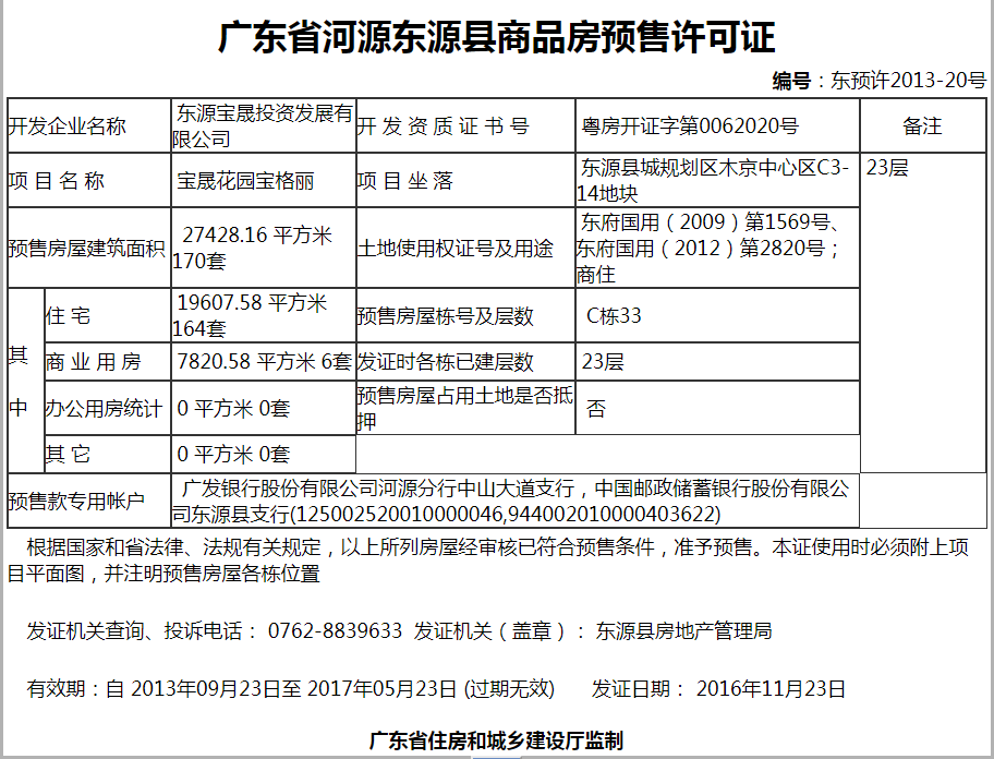 - 东预许2013-20号 详情发证时间 2016-11-23绑定楼栋C栋33证件照片