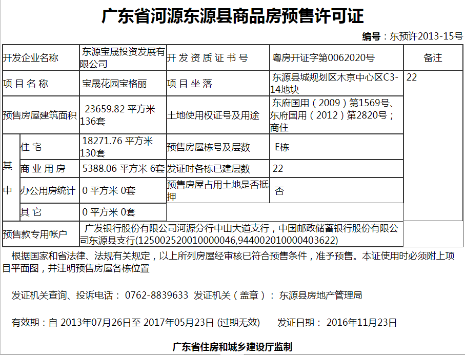 - 东预许2013-15号 详情发证时间 2016-11-23绑定楼栋E栋证件照片