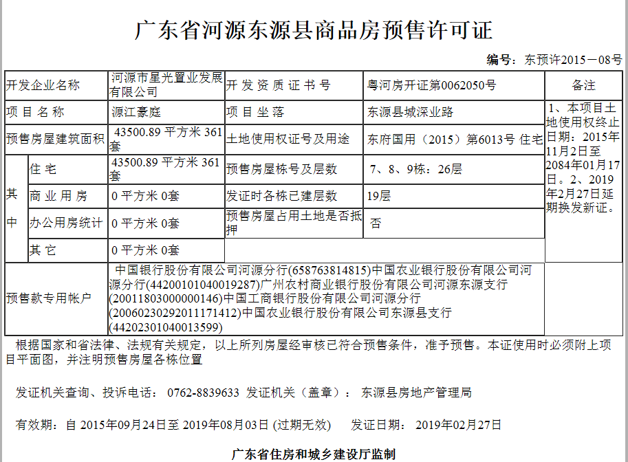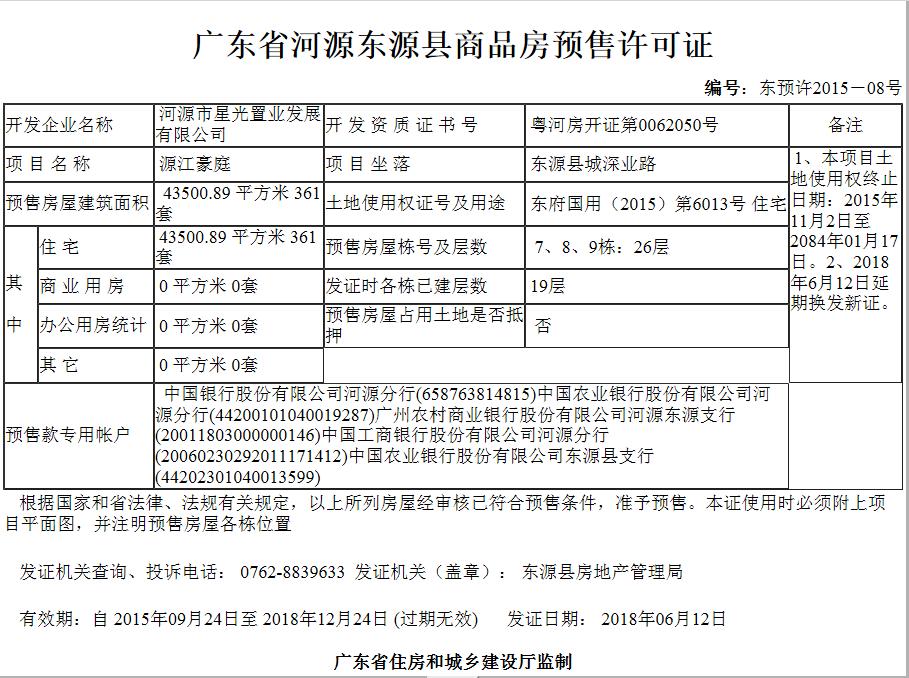 - 东预许2015-08号 详情发证时间 2018-06-12绑定楼栋证件照片