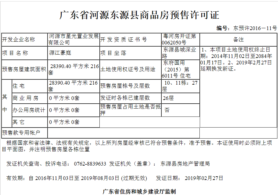 - 东预许2016-11号 详情发证时间 2019-02-27绑定楼栋证件照片