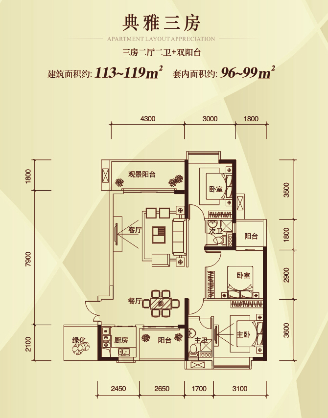3室2厅2卫-典雅三房