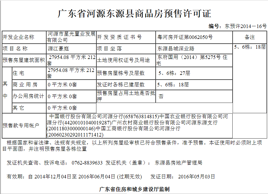 - 东预许2014-16号 详情发证时间 2016-05-03绑定楼栋证件照片
