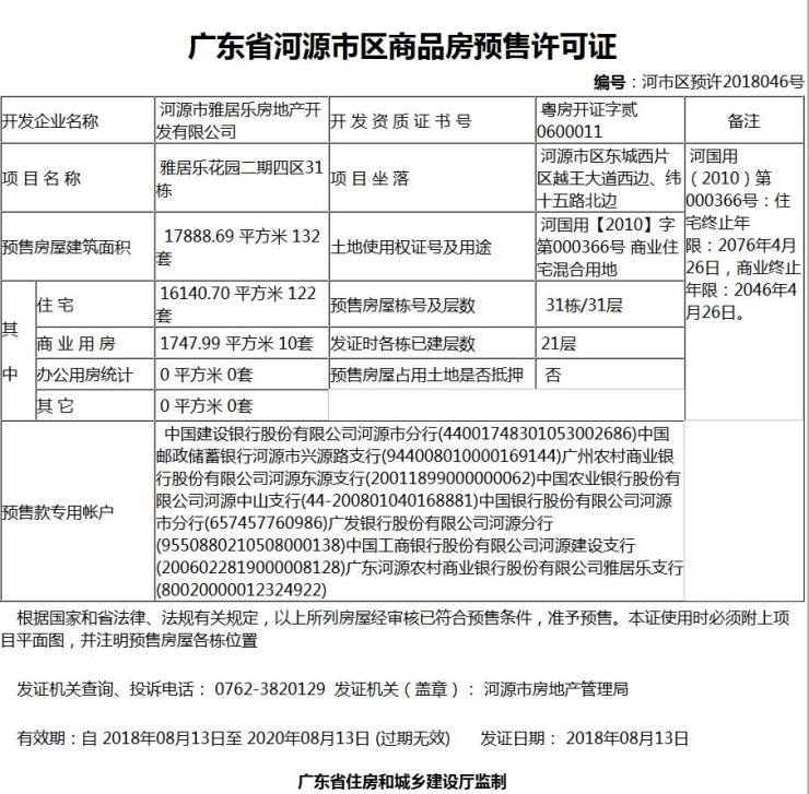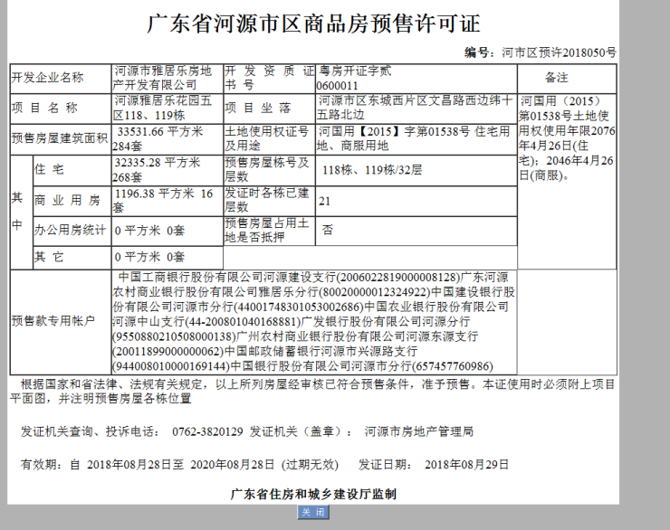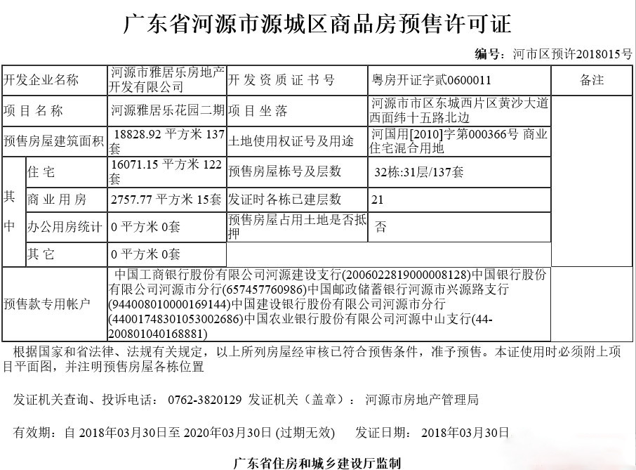 - 河市区预许2017042号 详情发证时间 2018-08-30绑定楼栋32栋,137套证件照片