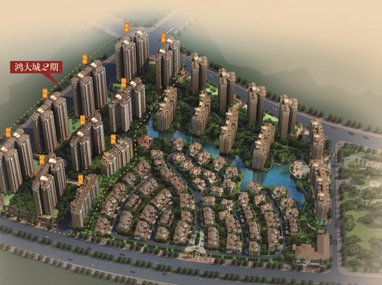 鸿大城以“公园R26;广场R26;纯中心”理念品铸了一座依偎公园、广场以及内设7000㎡阳光水岸内湖的生态豪宅。 项目一期总建面约12万平方米,由南至北分布花园洋房、独栋、联排、高层,合计630套住宅。花园洋房一线临湖,一梯两户,使用率高达90%,架空层层高5.5米,小楼间距达37米;高层单位75%卧室赠送飘窗,设双景观阳台。小区共有四个出入口,地块东南角为主出入口;北为高层住宅出入口;西边靠南为别墅住宅出入口,靠北为车行出入口。道路成枝形分布,连接南、北、西边靠北三大出入口,人行流线利用中央水系的湖边步道、栈道形成贯穿南北的独立步行系统。项目内建有7000平米私家内湖,周边以绿景相伴,建筑与自然和谐相处,相映成趣!
