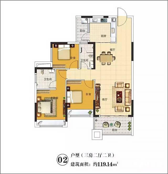 在售 户型方正 全明格局 主卧带卫 干湿分离 双阳台