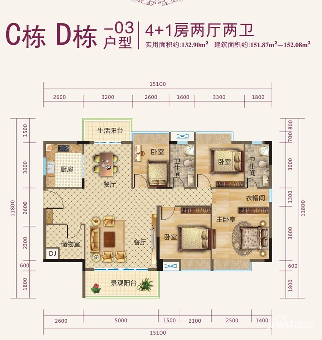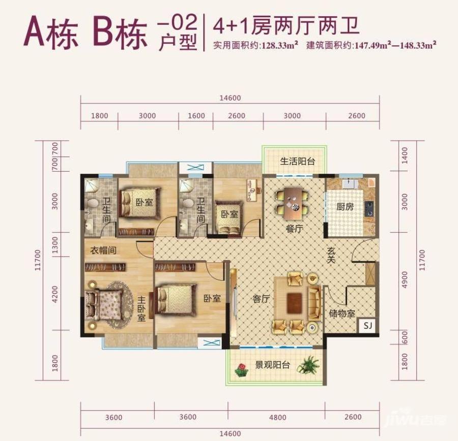 在售 户型方正 全明格局 主卧带卫 干湿分离 双阳台