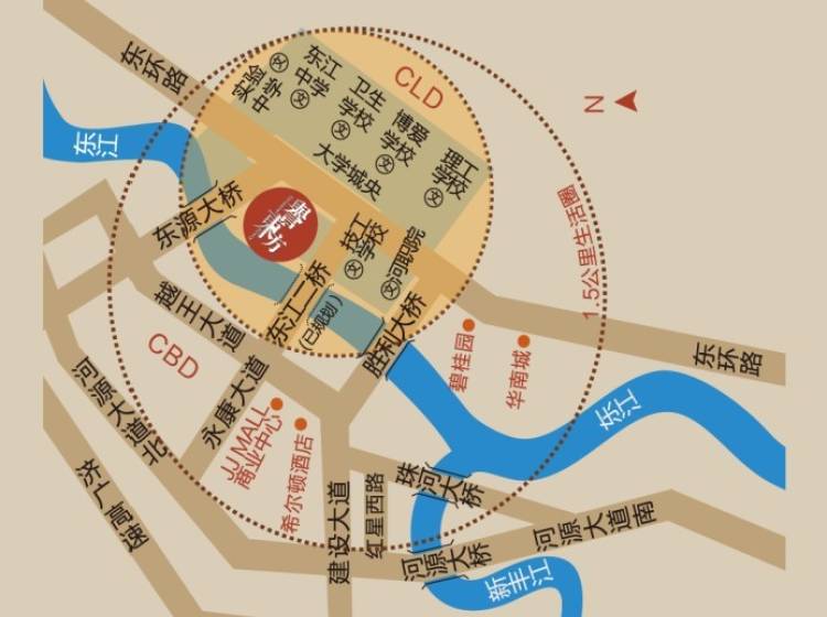 呈现立体交通的态势。政府规划市区3路公交车及8路公交车快速穿梭直达大学城央。通过胜利大桥与新城区相连,距离市政府仅5分钟车程,通过东江二桥,距离城市CBD商务中心仅1分钟车程;通过迎客大桥与老城区相连,距老城商业区仅5分钟车程;距粤赣高速源城出口10分钟车程。