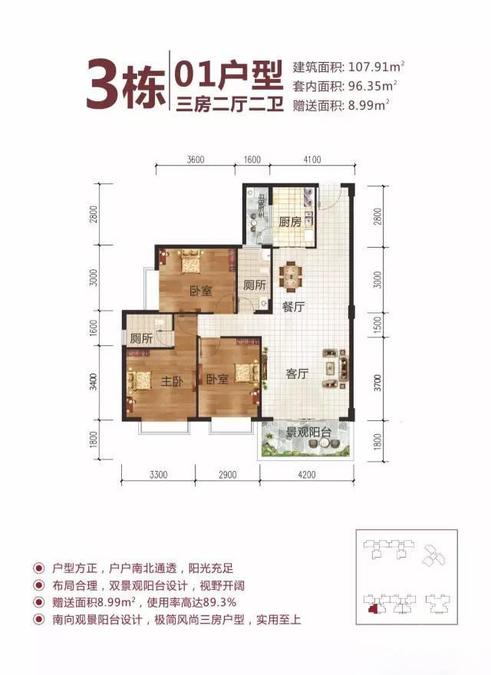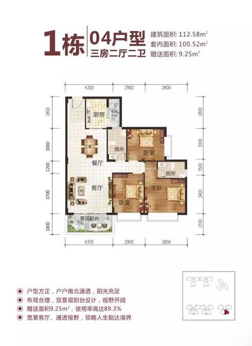 在售 户型方正 全明格局 主卧带卫 观景落地窗