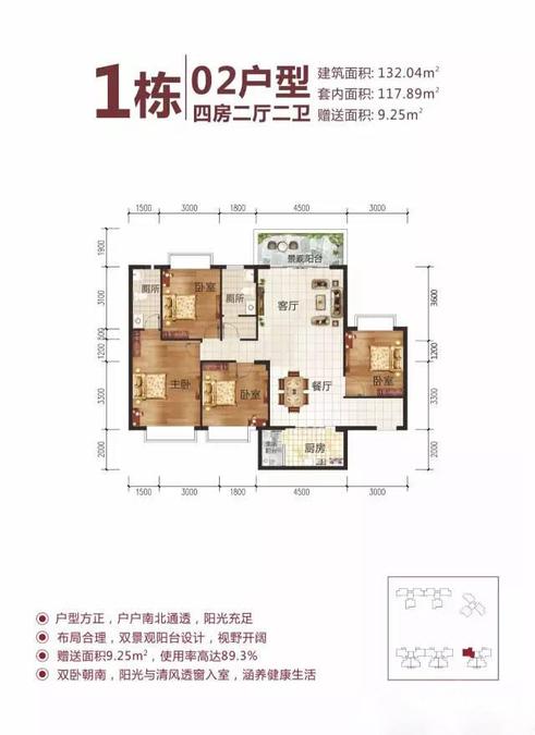 在售 户型方正 全明格局 主卧带卫 飘窗