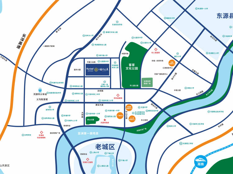 教育配套:河源中英文实验学校、市二小、市三小、市二中、田家炳中学。