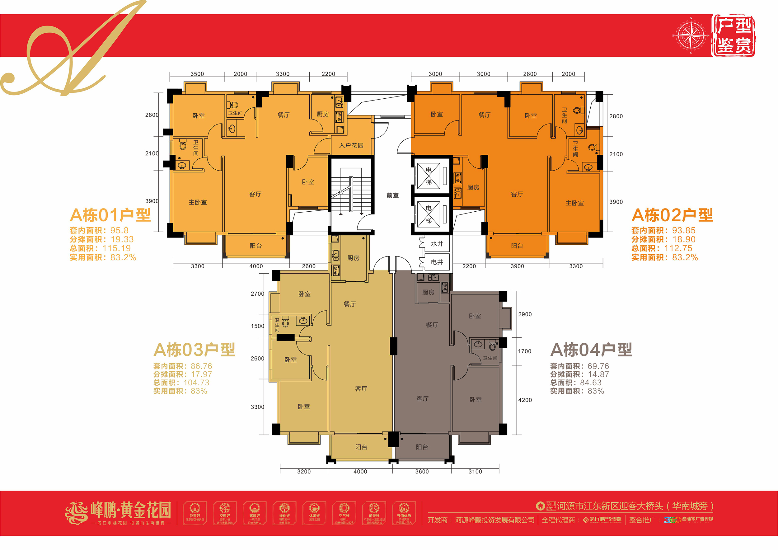 3室2厅2卫-峰鹏·黄金花园A栋户型