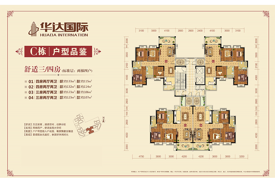 4室2厅2卫-华达国际D栋户型