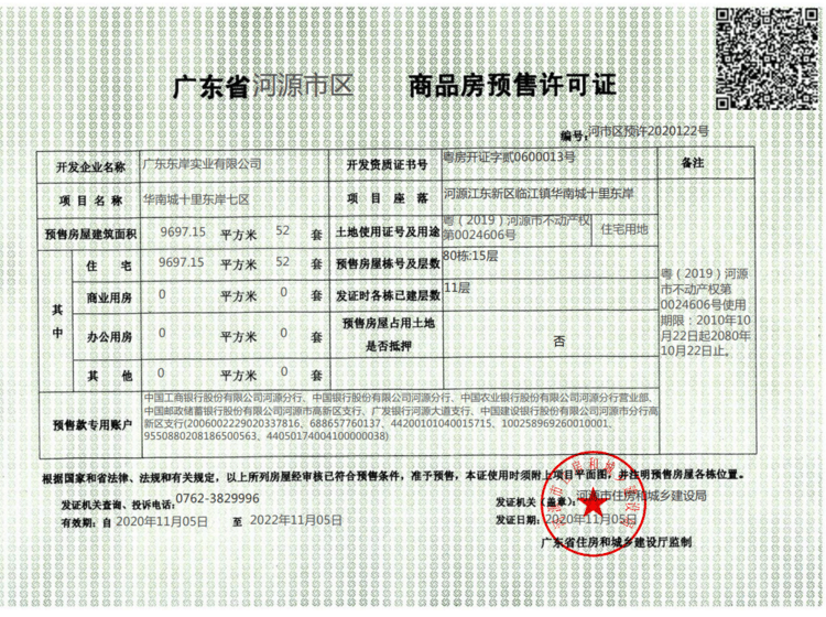 - 河市区预许2020122号 详情发证时间 2020-11-05绑定楼栋80栋:15层证件照片