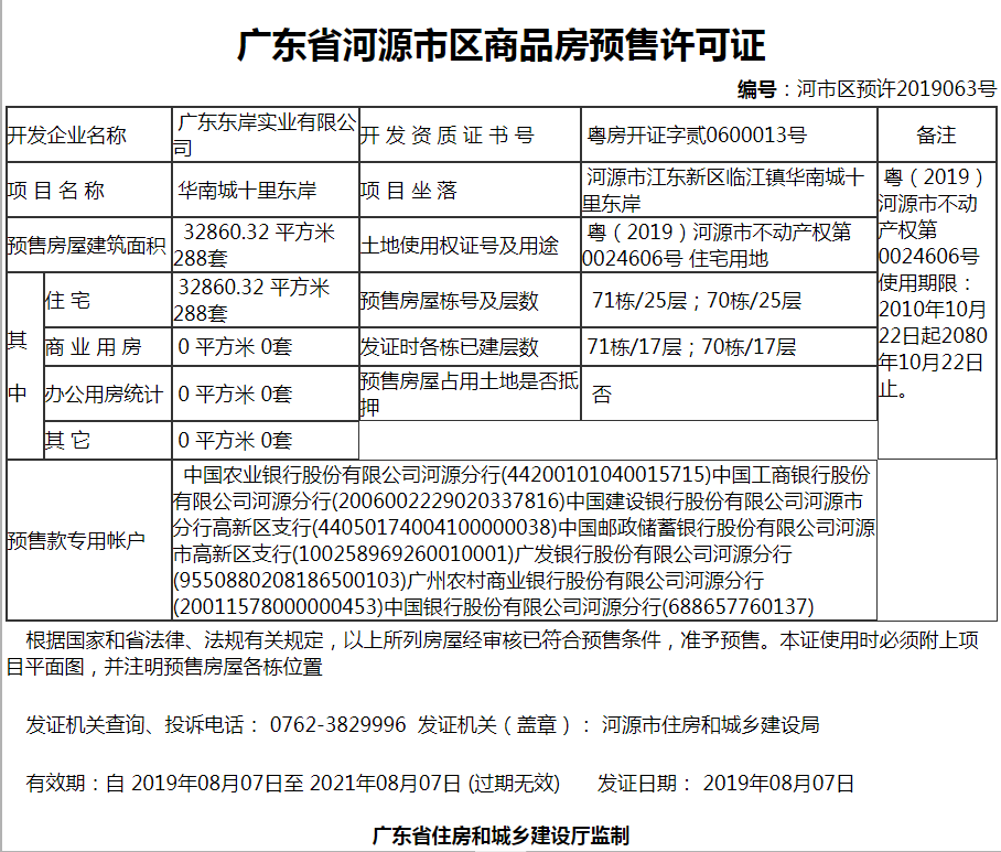 - 河市区预许2019063号 详情发证时间 2019-08-07绑定楼栋71栋/25层,70栋/25层证件照片