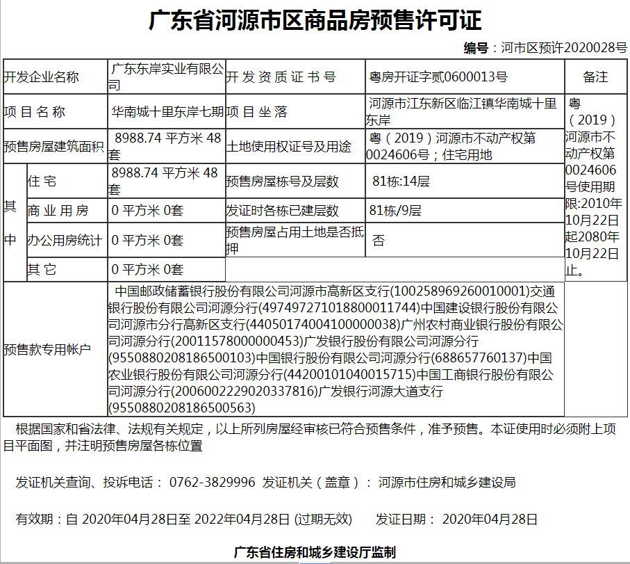 - 河市区预许2020028号 详情发证时间 2020-04-28绑定楼栋81栋:14层证件照片