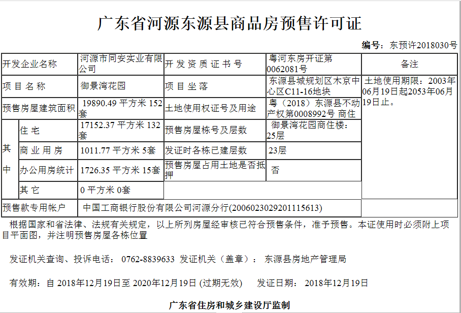 御景湾花园总用地面积1997平方米,计容建筑面积20036平方米,建筑密度26.33%,绿地率23.43%,总户数为168户,共用地下室车位总数为168个(按规定配备新能源充电桩),建筑层数26层。