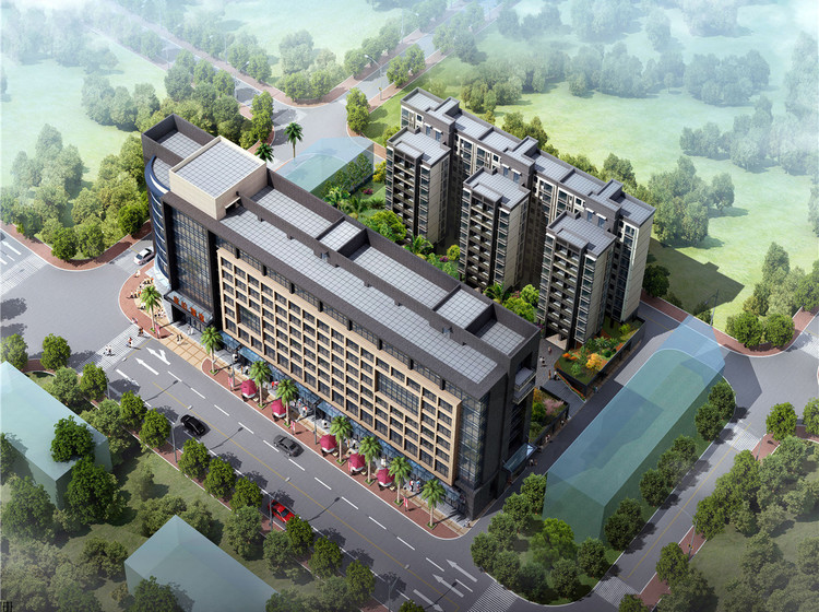 项目共由3栋高层住宅建筑和1栋酒店公寓建筑围合而成。同时项目公寓已引进康铂酒店品牌,致力打造一流的酒店式公寓,全心为客户打造真正的“宜居之地”。