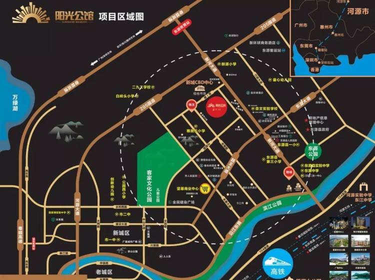 阳光公馆傲踞越王大道中以城芯姿态坐拥新城多元繁华,同步享受东源及东城西片区的发展双红利,不仅享受河源市商业中心及河源万达广场双商圈辐射,河源未来城市新地标(华丰世纪国际贸易中心)同落于此,一个商圈云集的城央地带,一处汇聚八方财气的繁华之所,投资价值无可替代。